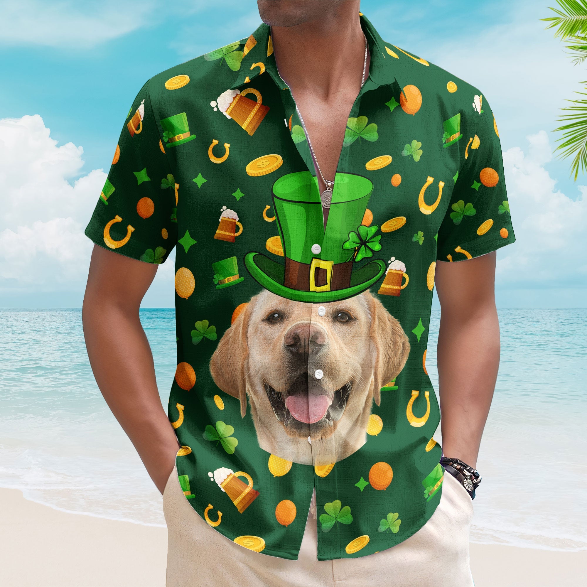 Custom Pet Face St Patrick’s Day For Dog Lovers, Cat Lovers – Personalized Photo Hawaiian Shirt