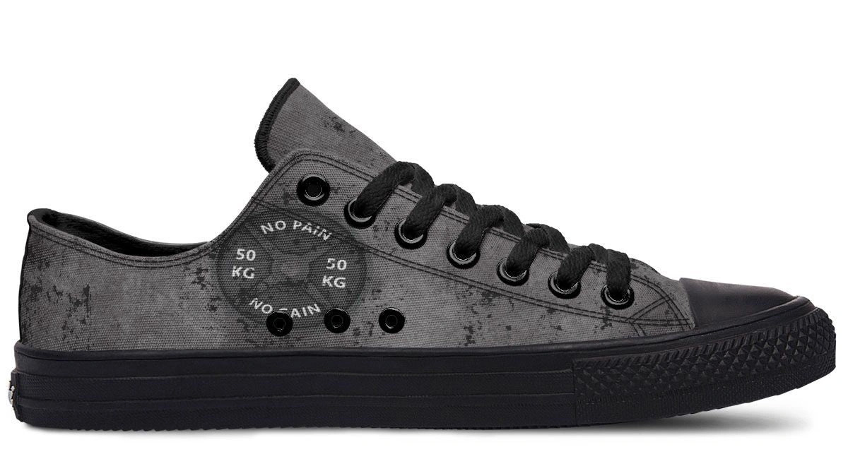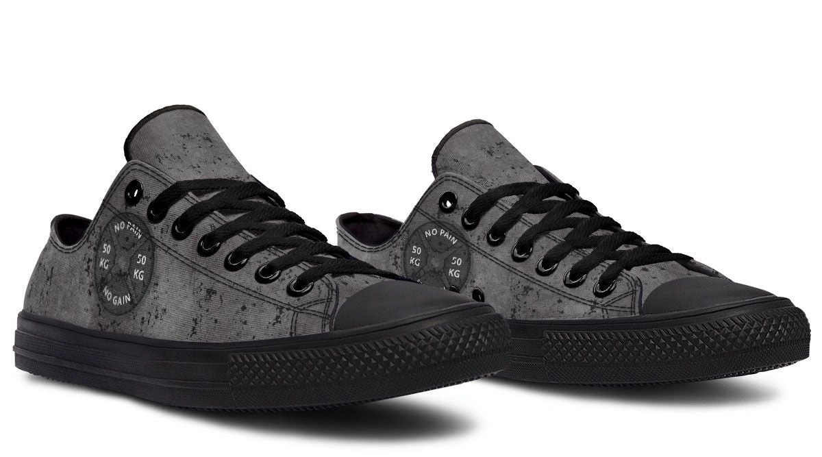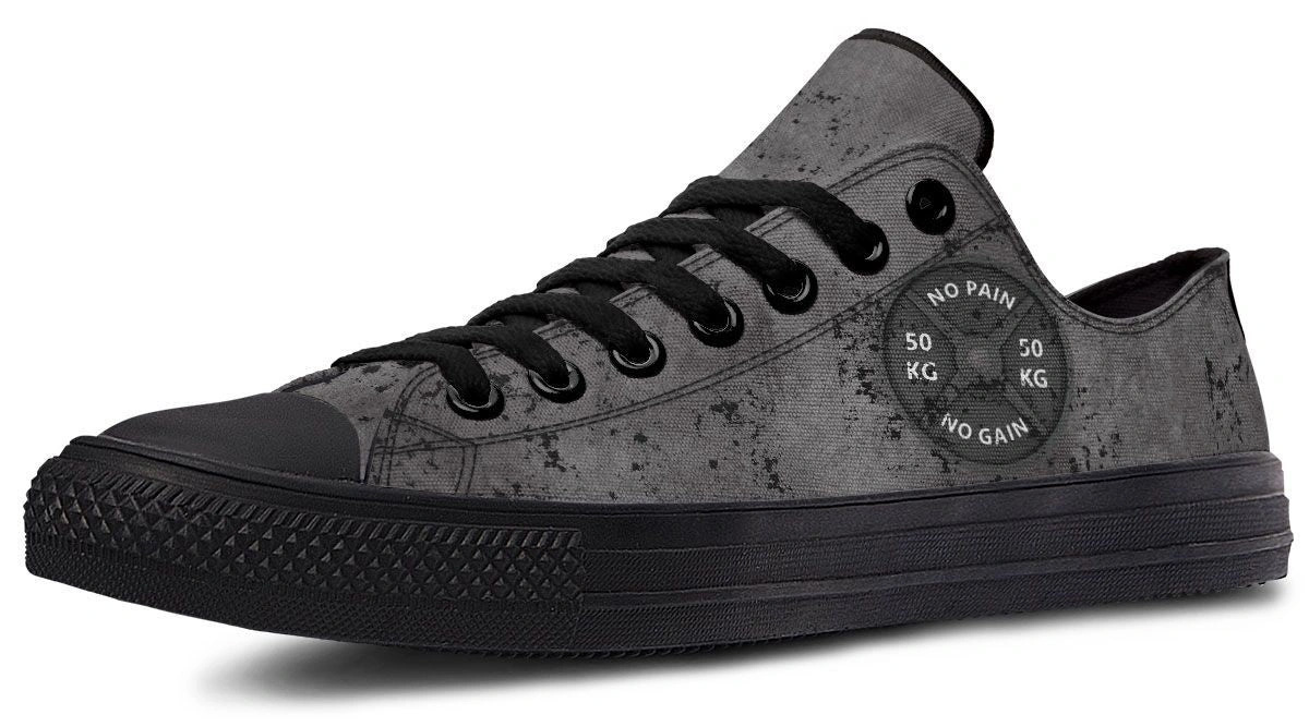 Stay focused with the No Pain No Gain Gray Pattern Black Low-Top Sneakers. Versatile, trendy, and built for all-day comfort. Perfect for gym or street.